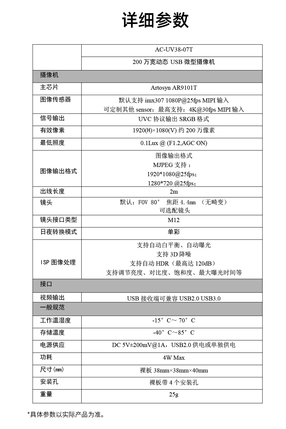 200 万像素宽动态 USB 智能摄像机;